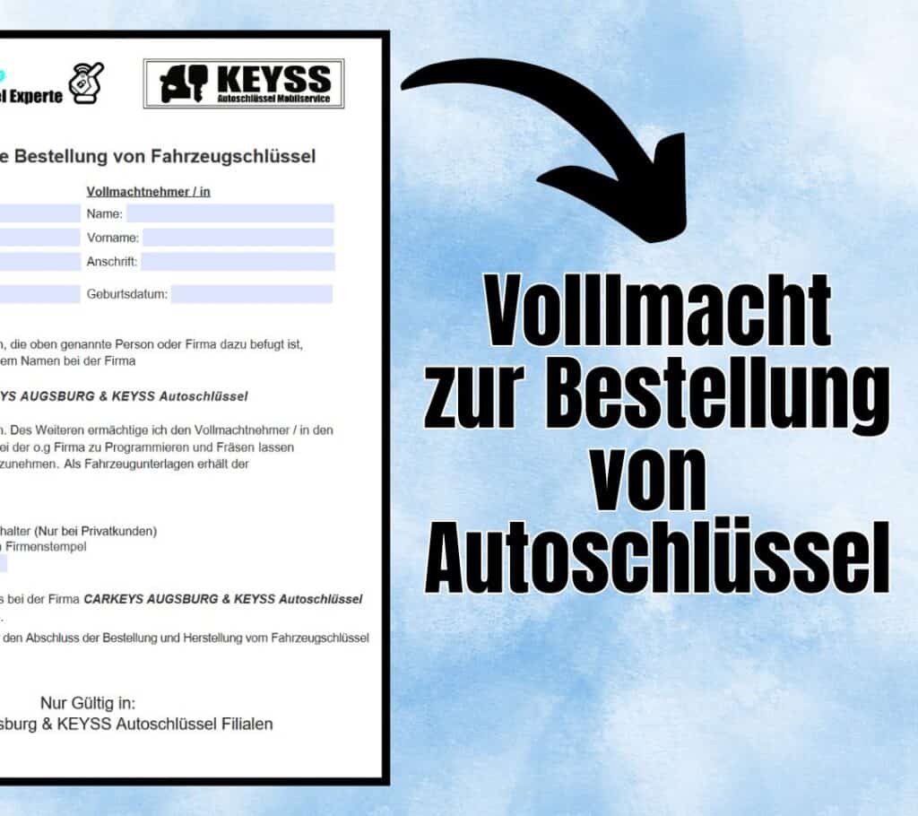 Vollmacht zur Bestellung von Autoschlüssel.